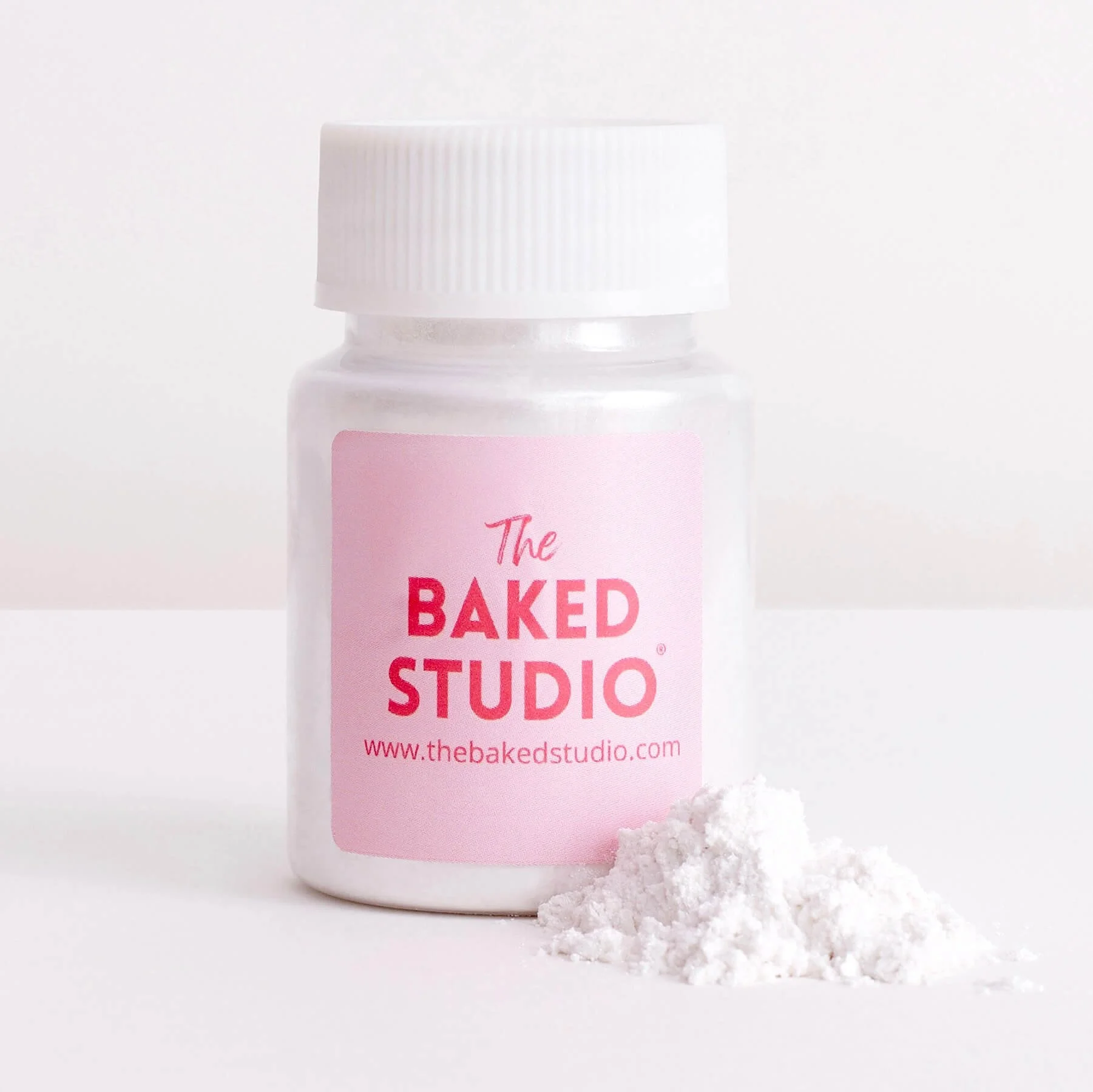 For this cake I used our 12” cake boards, white rodanthe dried daisies and a fine coating of our white silver lustre on the top to add a touch of sparkle. I also whitened the buttercream then added Colour Mill Sage to achieve the overall colour.